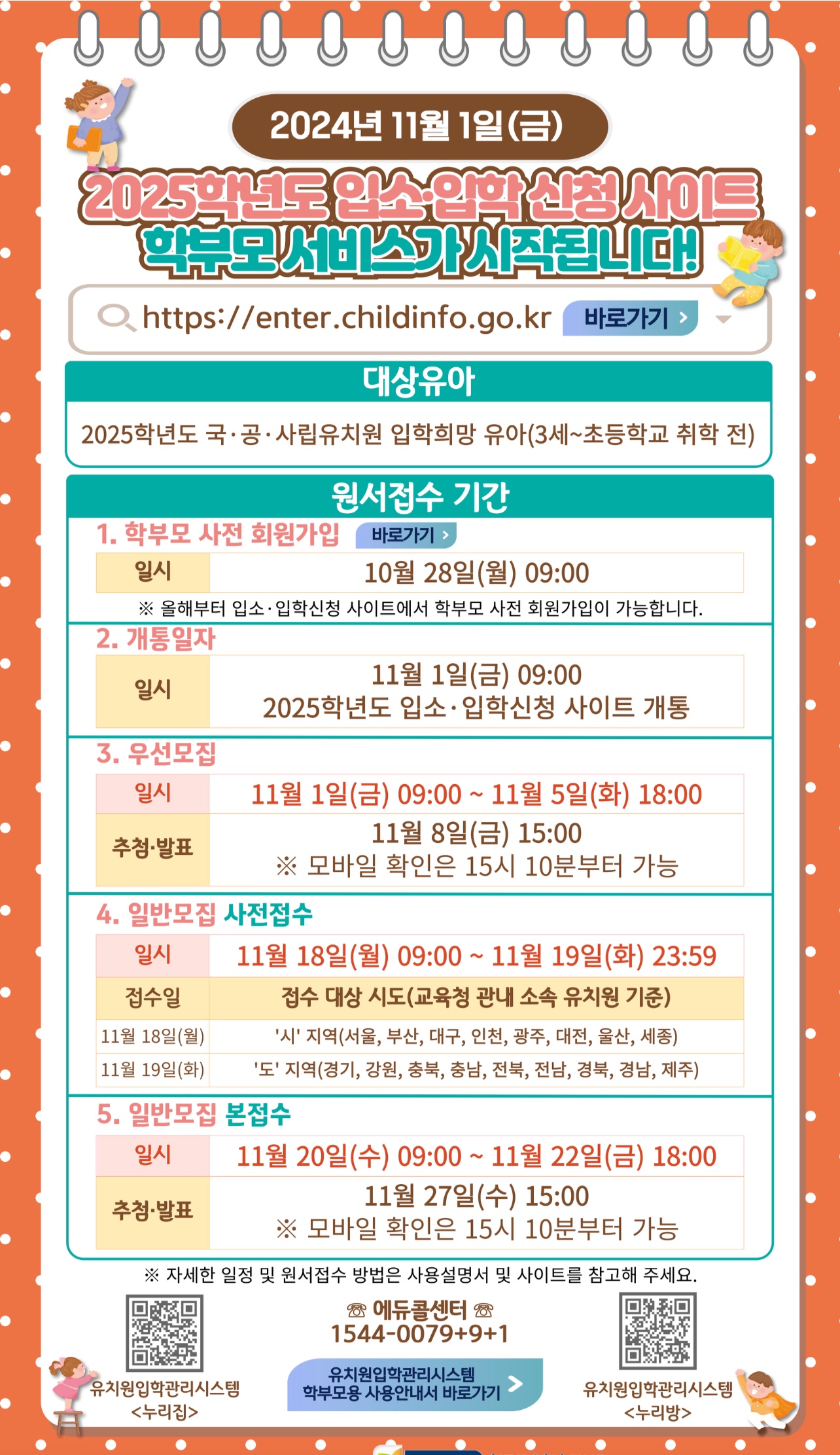 해당 접수일시를 정확하게 확인 후 유보통합포털 사이트 가입 후 입학 자녀를 등록하시고