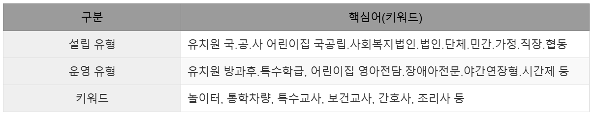 또한 학부모가 내 자녀에 맞는 어린이집과 유치원을 비교하고 신청 할 수 있도록 핵심어(키워드)를 이용한 검색도 가능하도록 하여 편의성이 높아질 것으로 기대됩니다.